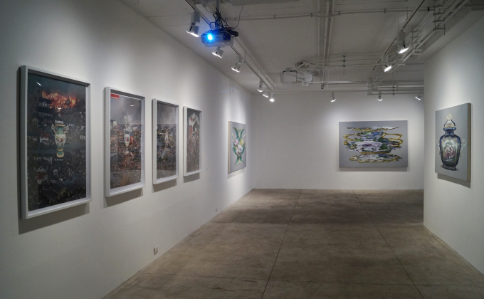 La exposición en Galería XS cuenta con tres grupos de obras: la serie pictórica Grotesco, la serie de impresiones intervenidas Lo Infinitesimal y una pieza de video creada especialmente para esta muestra, Salsa. En Grotesco el artista presenta una serie de pinturas de gran formato de floreros de porcelana deformados horizontalmente. Estas transformaciones anamorfas, sin solución o punto de vista corrector, se extienden a lo largo del cuadro, oponiéndose así a la verticalidad natural que estos recipientes poseen, poniendo en crisis la utilidad del objeto a través de su representación.